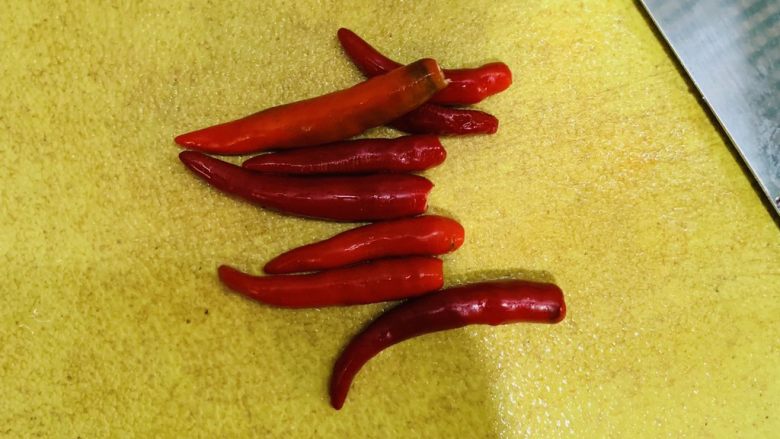 4. 豆角折手指般长条。