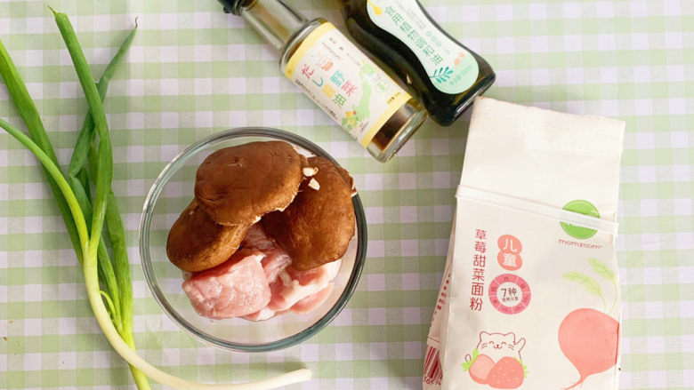 2. 香菇瘦肉葱洗干净后放入料理机中打碎