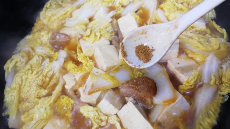 白菜炖豆腐属于东北家常菜,做法简单,汤汁淡黄,且味道鲜美。