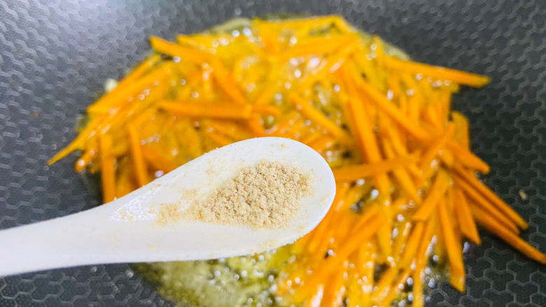 9. 倒入南瓜丝