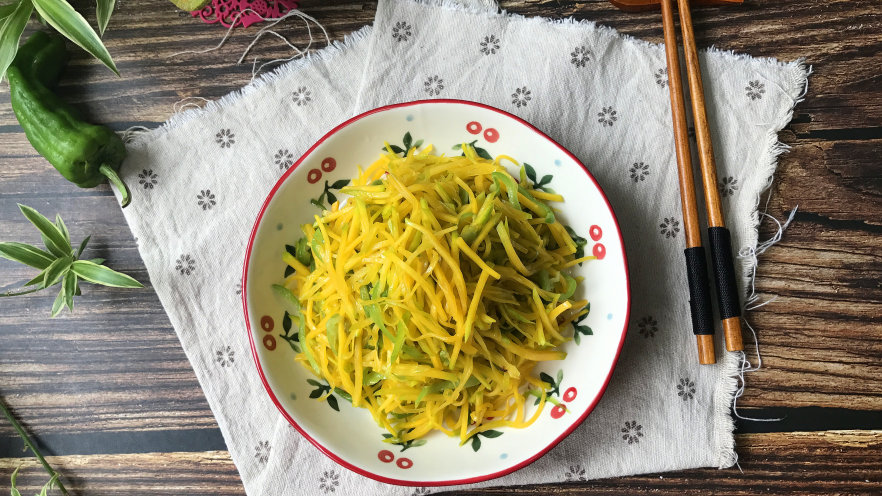 - 2、腌好的南瓜丝,可冲洗,也可以不冲洗,具体看个人口味来就行哈。
