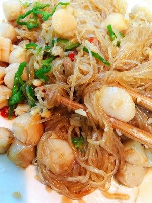 7. 搅拌,让粉丝充分吸收汤汁。瑶柱超级鲜嫩,裹上汤汁和蒜油小心把舌头吃进去。😋