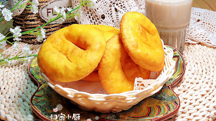 14. 金灿灿的油饼炸4-5分钟即可出锅。