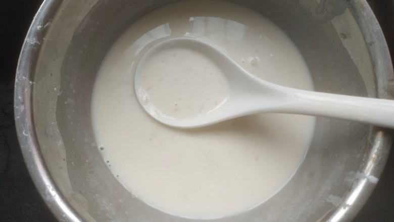 8. 稍微凉一会儿,放入淀粉糯米汁中,搅拌均匀