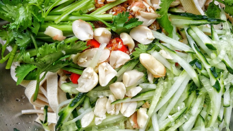 13. 锅中烧开水,加豆皮焯一分钟捞出过凉,