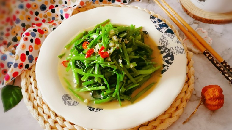 - 空心菜加热时间不易过长 快速翻炒 保持爽脆的口感。