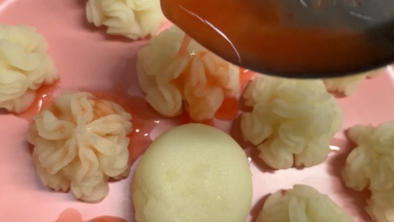 13. 搅拌均匀慢慢淋上土豆泥花顶。