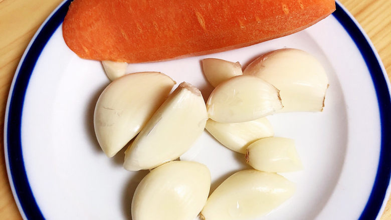 8. 倒入胡萝卜和蒜末翻炒均匀。