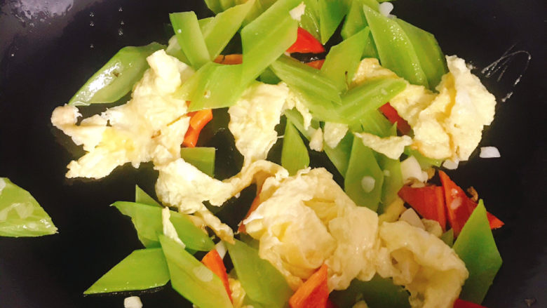 莴笋炒鸡蛋,鸡蛋鲜香美味,莴笋清脆爽口。