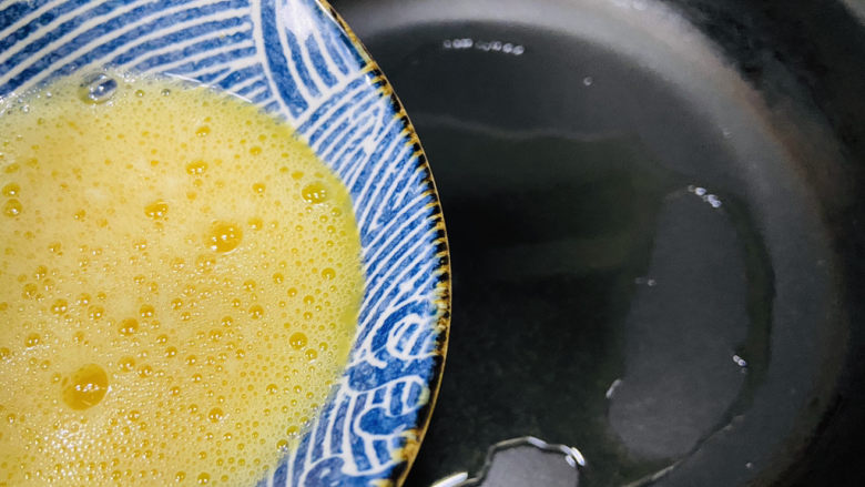 7. 转动炒锅把蛋液摊均再炒熟盛入碗中备用
