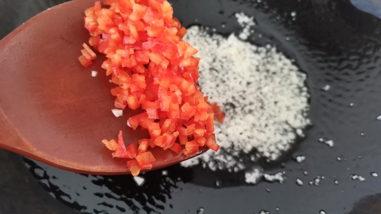15. 红椒蒜泥小心的装入烤好的香菇里