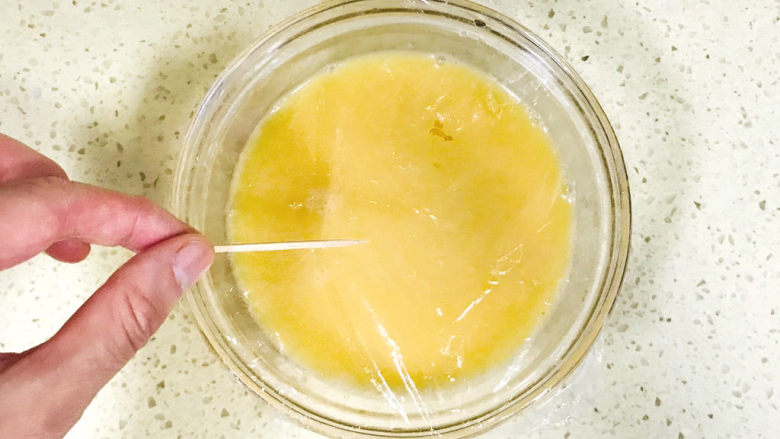 13. 用牙签在保鲜膜上扎出小孔,防止鼓起来
