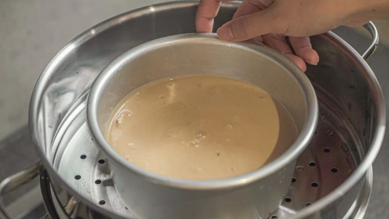 13. 表面放入几颗美国碧根果,凉水上锅大火烧开转小火蒸40分钟,关火闷3分钟即可