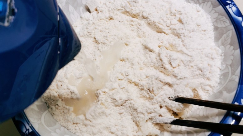 5. 放入面粉 放入白糖