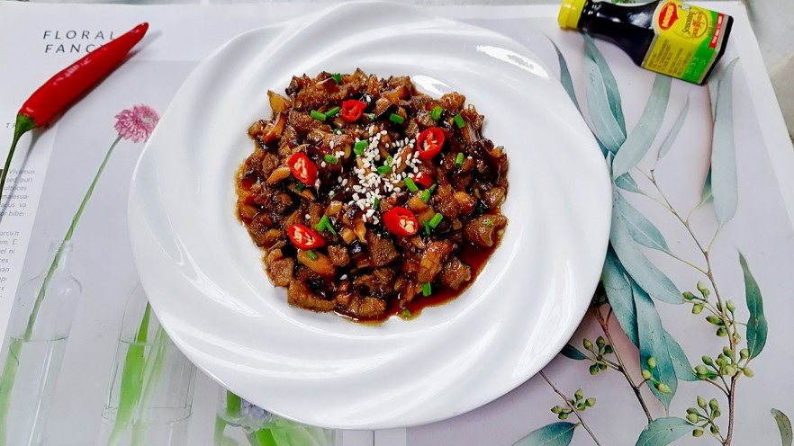 17. 拍上成品图,一道美味又下饭的香菇牛肉酱就完成了。