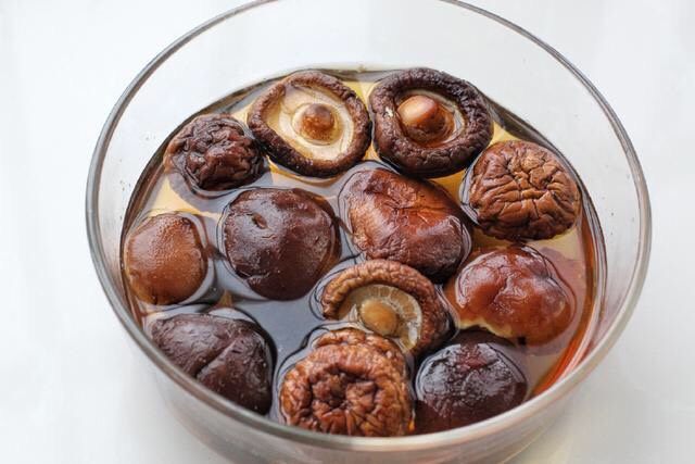 1. 干香菇提前用常温水泡发,如果时间比较紧可以用温水泡香菇,但千万别用开水,会造成营养成分流失。