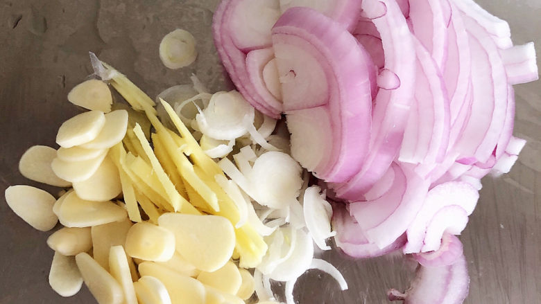 13. 鸡胗会出很多水,大约炒五分钟后,放入葱姜蒜、洋葱继续爆炒。