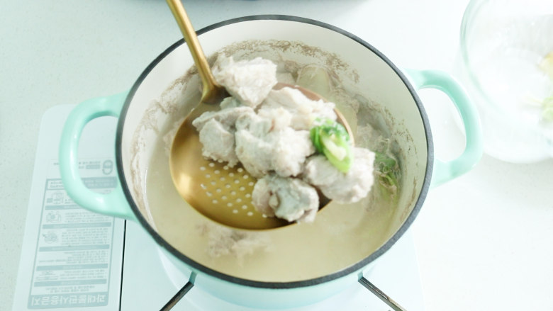 9. 水开后将焯熟的排骨捞出,然后用清水冲洗干净