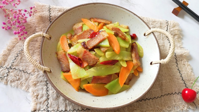 妹妹家自己做的腊肉,搭配蔬菜随便炒一下都好吃。