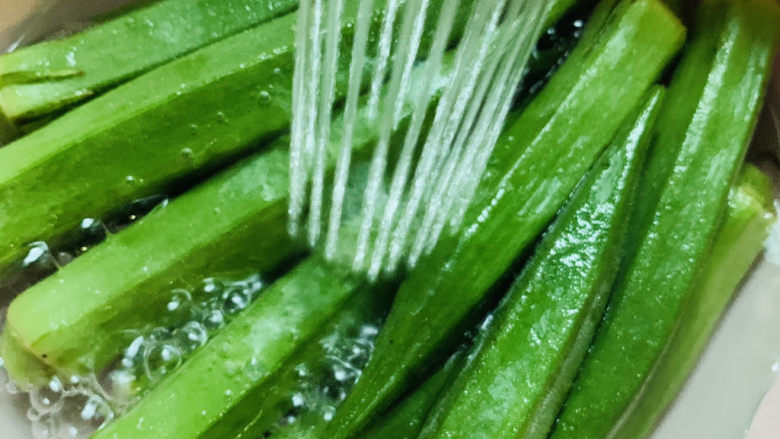 8. 另起一锅水,加少许盐和油,烧开,加入秋葵