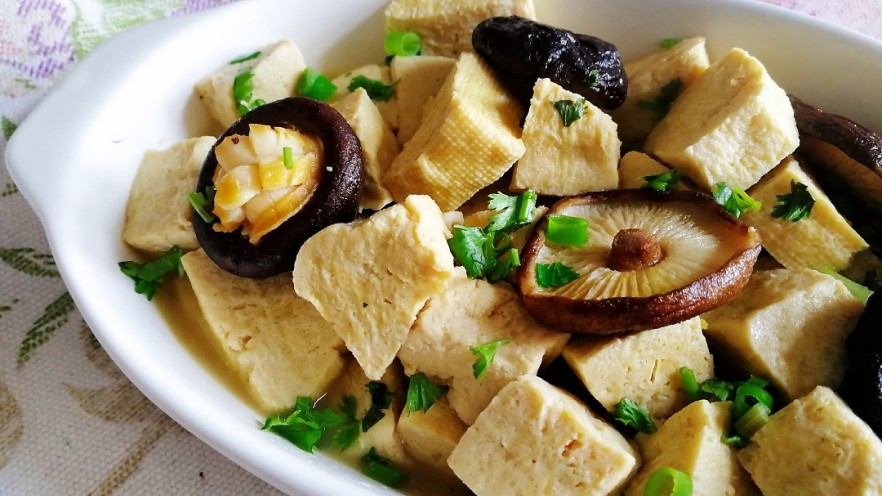 冻豆腐吸饱了香菇香味的汤汁,鲜嫩入味。