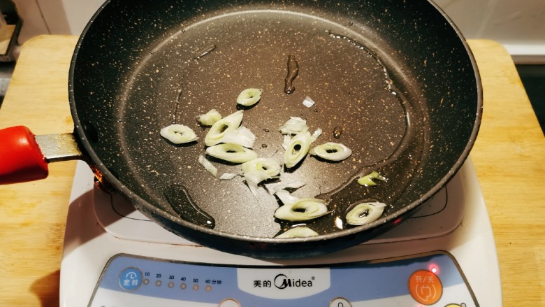 6. 起油锅 放入食用油 油热后放入葱片炒香
