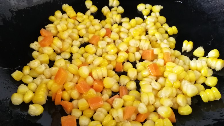 9. 另起一锅加适量油,油热放入胡萝卜,文火翻炒均匀。