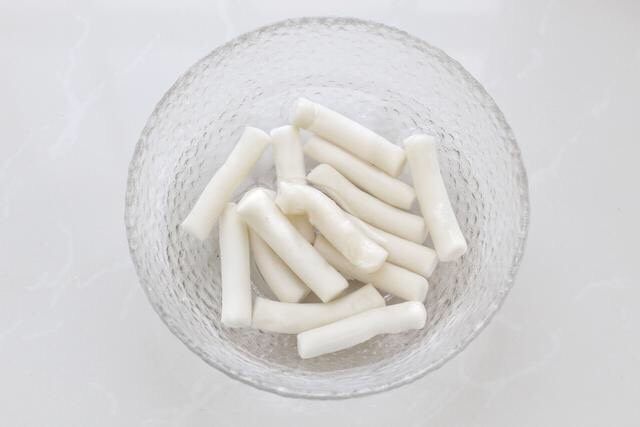 1. 将年糕条掰开洗净,然后浸泡在清水中半个小时左右。
