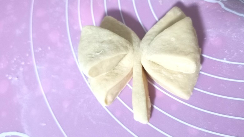 14. 烤盘放上油纸,做好的蝴蝶结面包放在上面