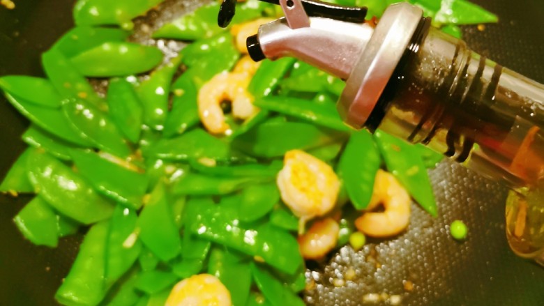 荷兰豆炒虾仁,清香鲜美,颜色清新,即使多吃也不会有负担。