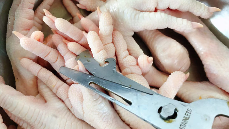 1. 在超市买到新鲜的鸡爪回来剪去指甲洗净