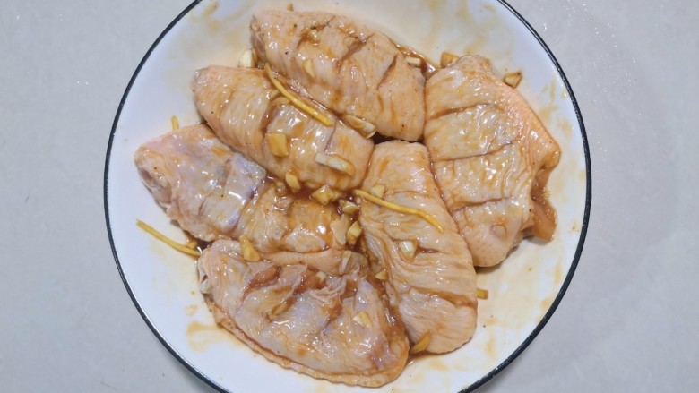 4. 把鸡翅按摩几分钟,腌制30分钟