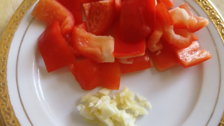16. 汤匙快要收尽,放入红甜椒,放点醋炒匀即可。