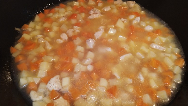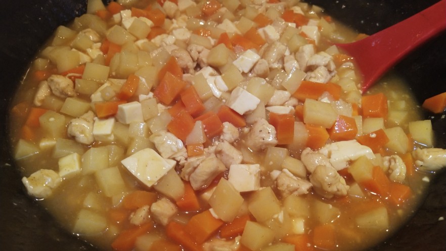 11. 煮开后放入一半的咖喱块,可以根据喜好增加或减少咖喱