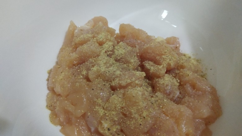 6. 热锅倒油,将鸡胸肉炒到没有生肉色