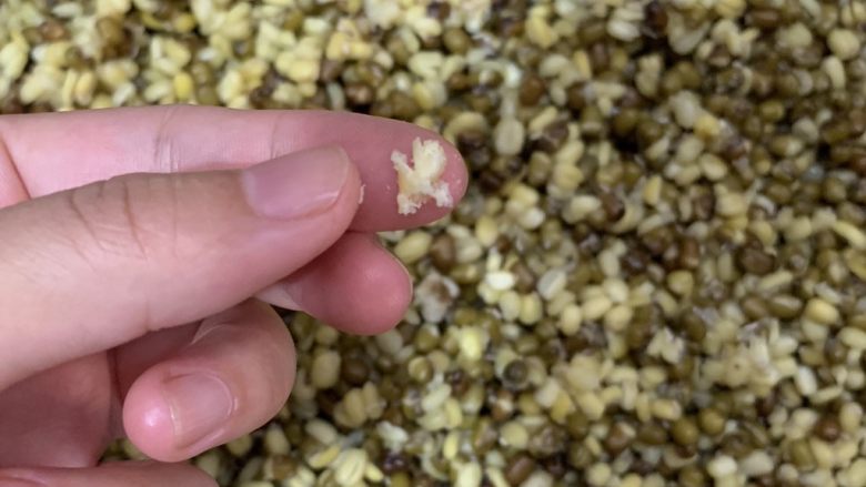 13. 绿豆蒸好了用手能轻轻就搓烂。