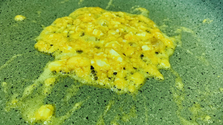 14. 锅加些油,大火热锅,加入咸蛋黄,转小火