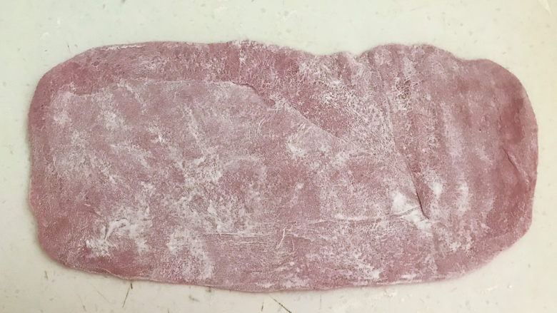 13. 把紫薯面团擀成面皮