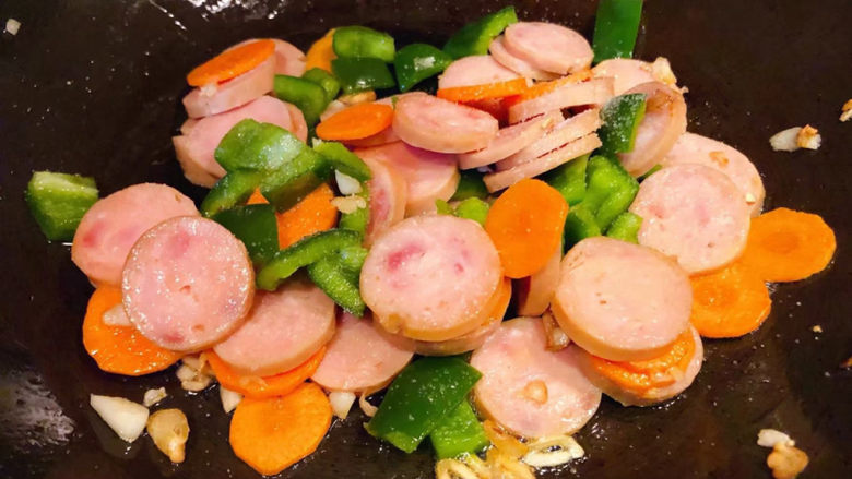 12. 香肠混搭着青椒胡萝卜一起吃香浓中带有时蔬的清香