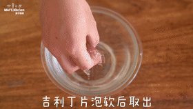 3. 吉利丁片泡软后取出,加入料理盆中。