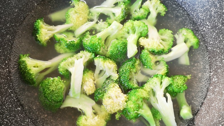 7. 锅里放水烧开,下入西蓝花焯水至变色。