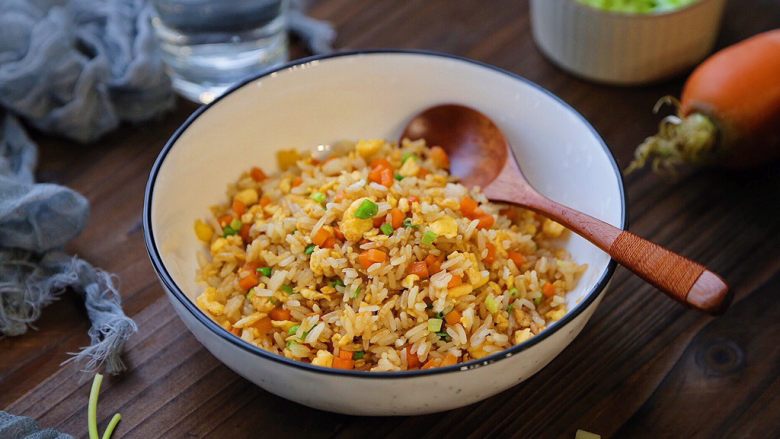 - 米饭用最好用冰箱冷藏的隔夜米饭,比较干身一点。用新鲜的米饭就要少放点水,煮的稍微干一点硬一点,这样做出来的炒饭才会粒粒分明