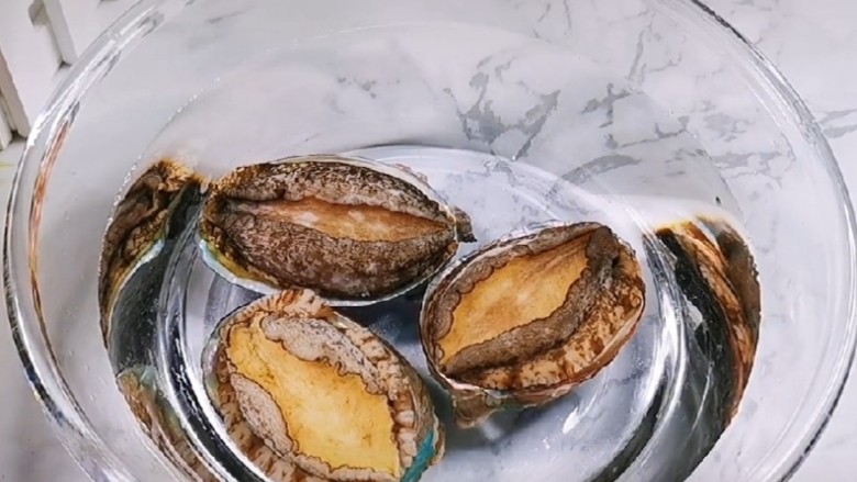 2. 将买来的鲍鱼用牙刷清洗干净,去除内脏