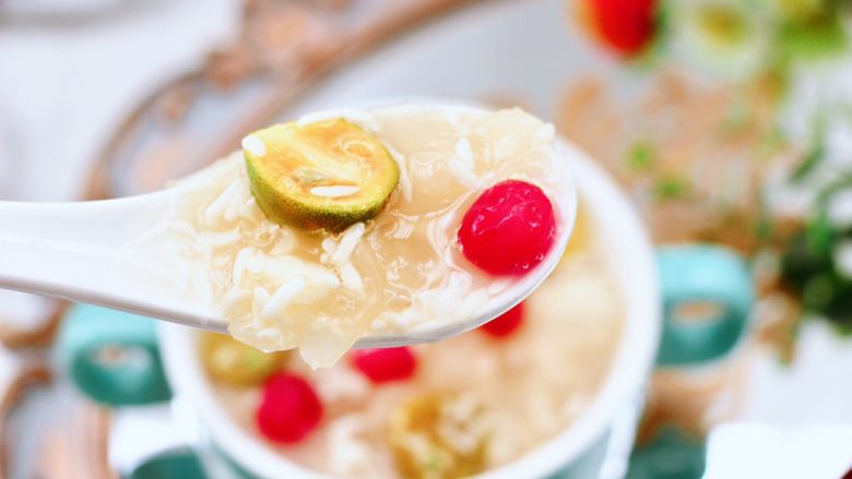 12. 酸酸甜甜的银耳酒酿青柠做好咯。
