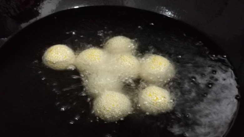 14. 这个炸的时候变色特别快,别炸糊了,感觉差不多捞一个出来破腹看看是不是炸透了,心儿是不是透亮