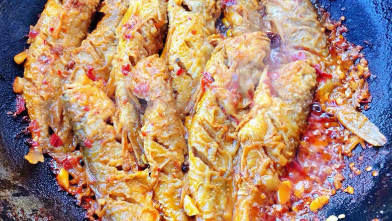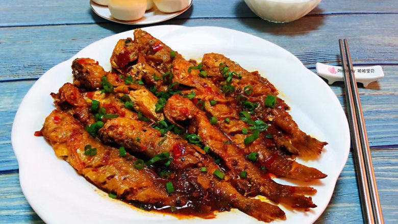 11. 香辣可口的黄花鱼装入盘中就大功告成了