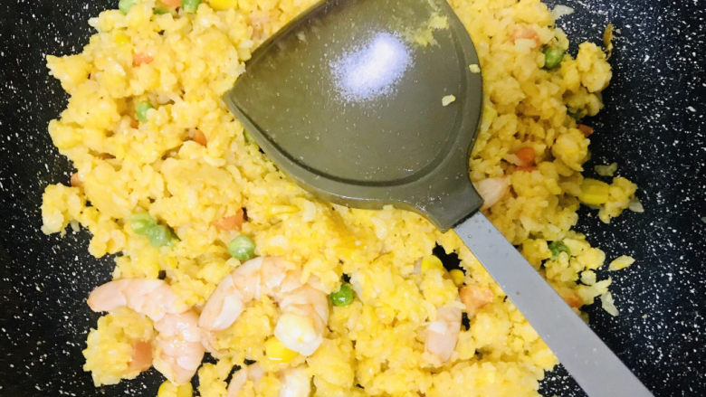 5. 打散后加入米饭拌匀