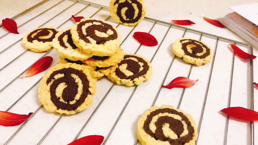8. 分出一半的面团加入刚刚搅拌的可可粉面絮