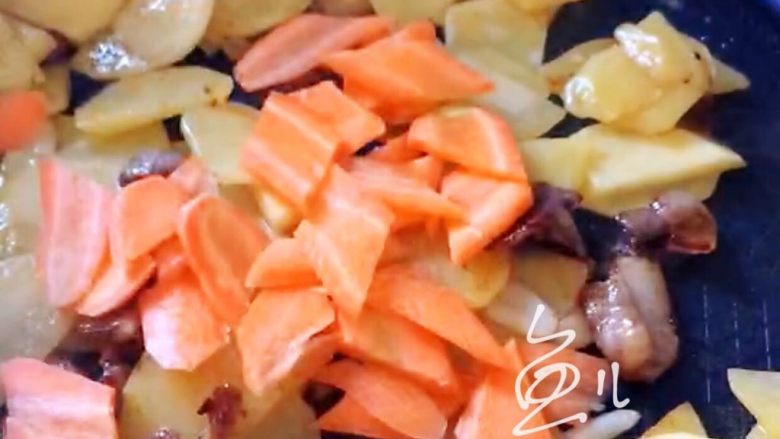 - 2、这道菜最后焖制的时候是不加水的,尽量用不粘锅操作,以免食材粘锅