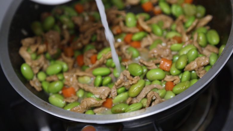 13. 再加入毛豆胡萝卜翻炒均匀
